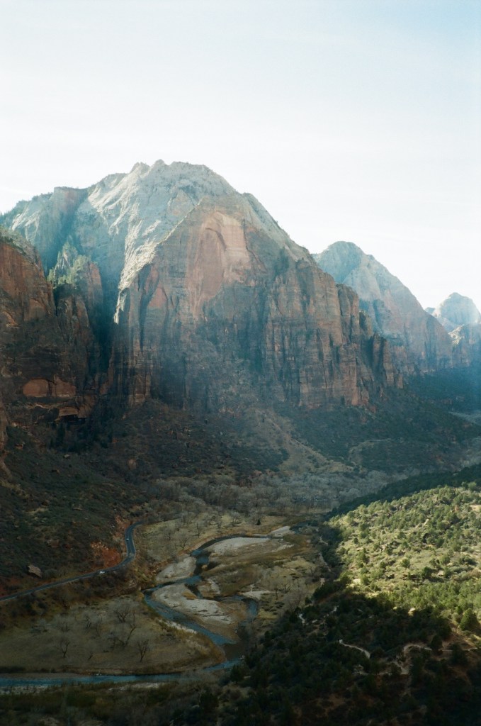 We finally arrived at Scout’s Lookout around 9am. The ranger had just finished her hike up and was checking permits to the eager line of hikers ready to take on the chained portion of Angel’s Landing. I was warily eyeing the next portion of the hike. I showed the ranger my permit and made my way to the base of the chains. I embarked on the chained portion for a bit before I decided to turn around. My boyfriend continued on a bit past me, but I decided to come down and take in the views while I got some photos on my film camera.