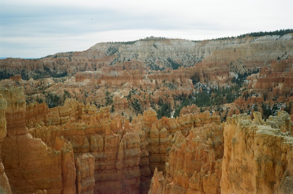 Feeling recharged, we drove the main park road all the way to Rainbow Point, the farthest viewpoint in the park. We briefly walked along the trailheads and snapped ample pictures as we saw the glimpes of snow splattered throughout the canyon.