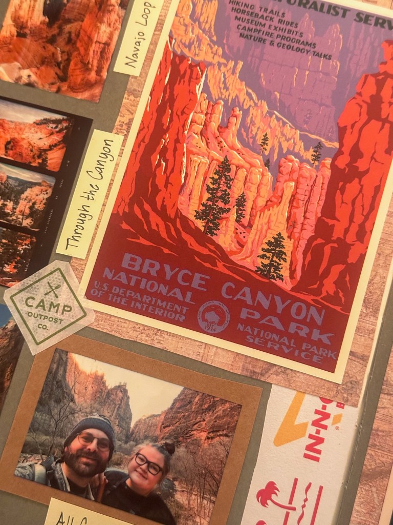 So here’s the new tradition: for each trip we take, I craft a junk journal spread — a compact keepsake that’s part memory mosaic, part art piece. Instead of letting our postcards and business cards gather dust while we endlessly pawn on what to do with them, I transform them into colorful, layered stories that we can both flip through and relive.