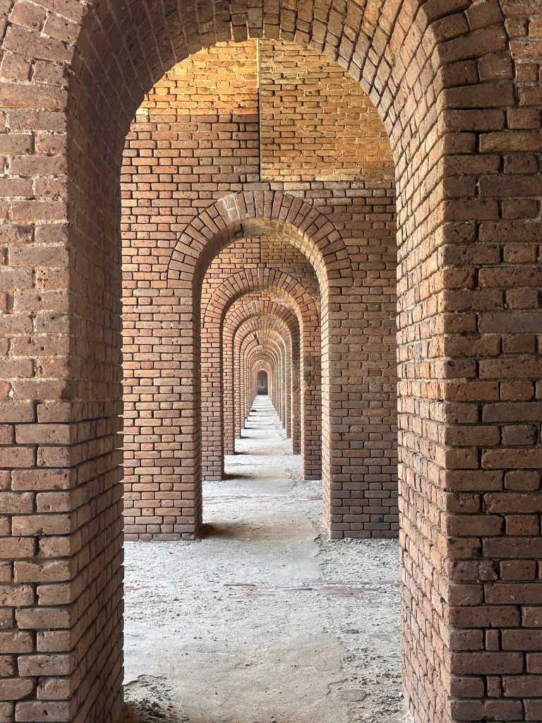We packed up our little beach setup and made our way back to the fort, this time with the intention of slowing down and really taking it in. We wandered through the brick corridors and open courtyards, pausing to read about the history as we went — letting the place speak a little more clearly before we left it behind.