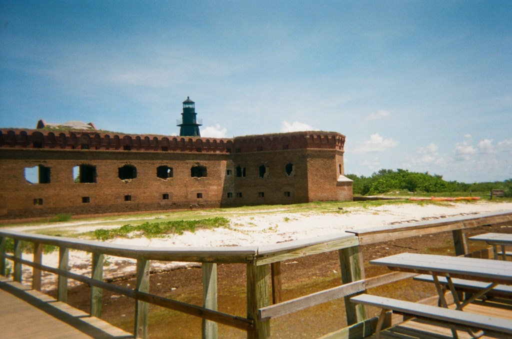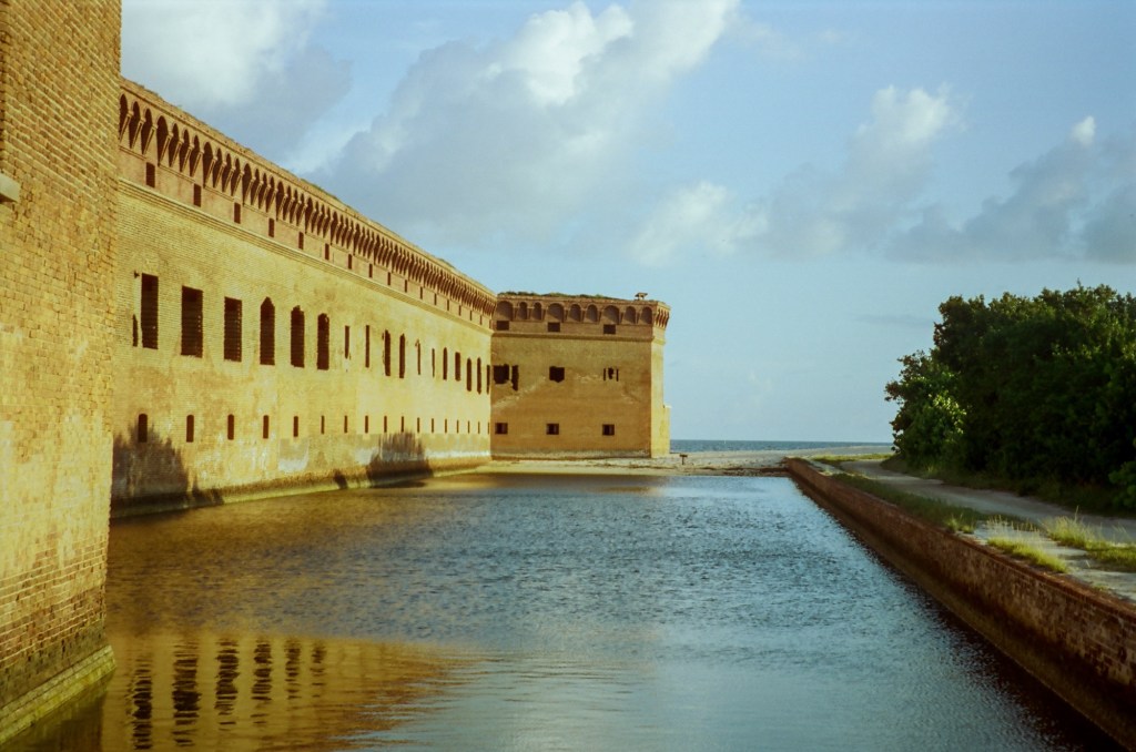 While Mason got ready, I slipped out for a solo morning walk around the edge of the park. I hadn’t explored much of Fort Jefferson the day before, so I took my time wandering within its historic brick walls. The early light cast long, golden shadows, and the whole place felt like it had been paused in time.