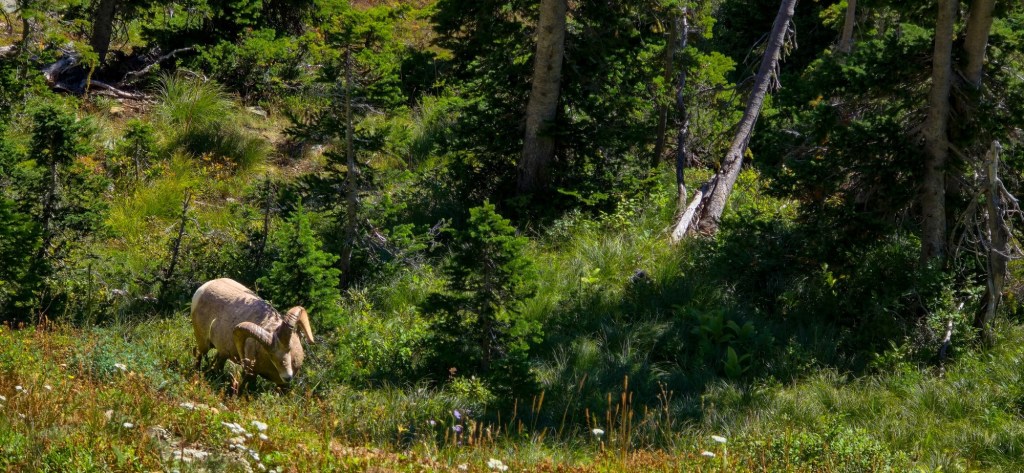 Wildflowers were abundant along the trail. Every step brought bright splashes of lupine, glacier lilies, and beargrass. Wildlife also played a starring role: we had a fortunate but brief encounter with a bighorn sheep grazing nearby, a reminder of the park’s rich biodiversity.