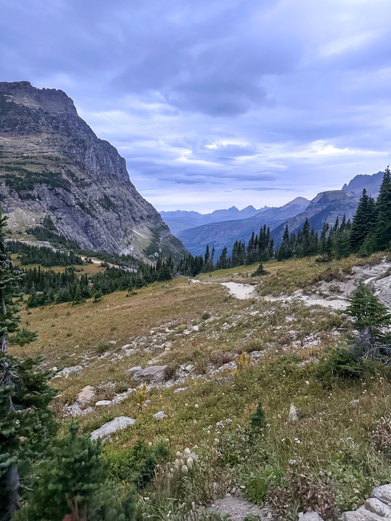 Starting at Logan Pass does require one thing: an early wake‑up call. In peak summer, the parking lot fills as early as 5:30 a.m. To beat the rush, we left our hotel, Many Glacier Hotel, at 4 a.m. and rolled into Logan Pass around 5:15 a.m., snagging a spot without any trouble. We ate a quick breakfast in the car for a little pre‑trail fuel before setting off on one of Glacier’s most unforgettable hikes.